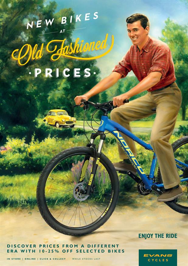 One of the obstacles marketing departments must overcome involves communicating an idea consumers have heard thousands of times before in a way that’s new and exciting. UK advertising agency Antidote faced this very challenge with Evans Cycles. The ad had to communicate that the company’s products were better value than those of their competitors – hardly an original USP – but Antidote were able to do so with aplomb. The ad is presented in an instantly recognisable 1950s style, showing a man in a button-down shirt and chinos and replete with Brylcreemed hair cycling past a lushly illustrated 1950s family car. The only new object in the image is the man’s bike, which is top of the line and reproduced photographically, rather than hand illustrated. The copy reads: ‘New Bikes at Old Fashioned Prices’. Simple, clever and effective.